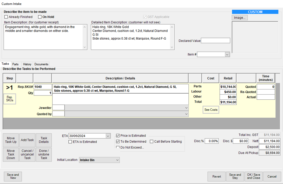 Regardless of how the materials are sourced, there are several ways to record the custom item in stock or link it to a customer order in The Edge POS system. This section outlines the recommended process for taking in a custom order and ensuring all details are accurately recorded.