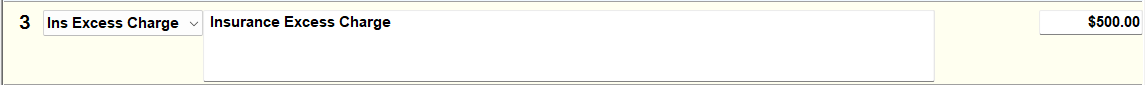- On the right side of the sale line enter the excess amount. (For this Scenario the Ins Excess Disc sale line would be $500.00)