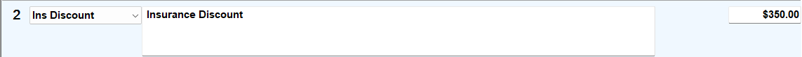 - On the right side of the sale line enter the excess amount. (For this Scenario the Ins Discount sale line would be $350.00).