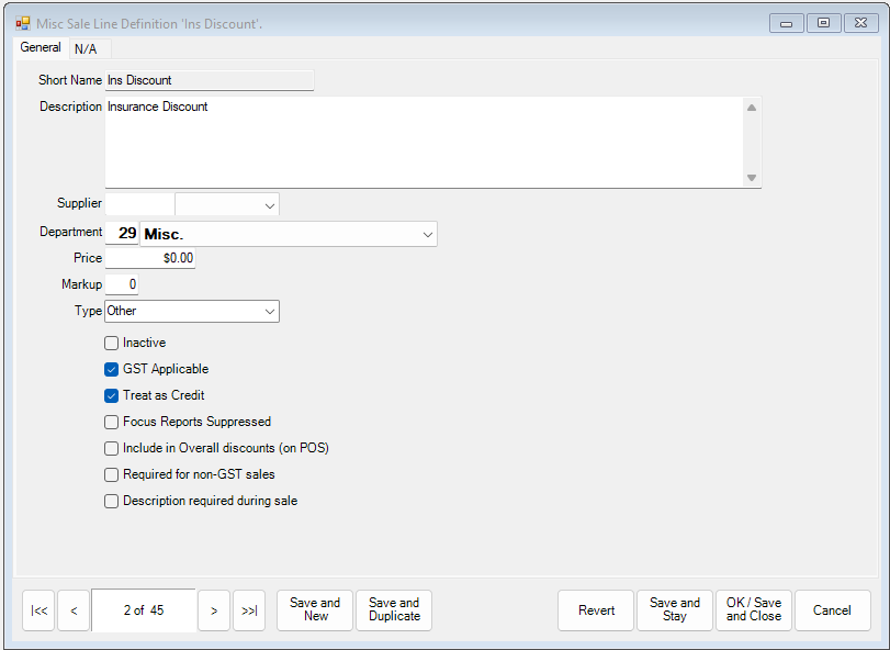 See below for instructions on how to setup these Misc Sale Codes. Once these codes are configured, they will be available in the POS for all future insurance claim transactions.