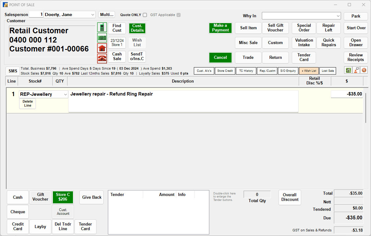 - Miscellaneous Sales or Repairs: Process these refunds through the Misc Sales function.