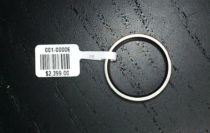 - Slide the Swing tag through the jewellery item, ensuring it fits securely without causing damage to the product.